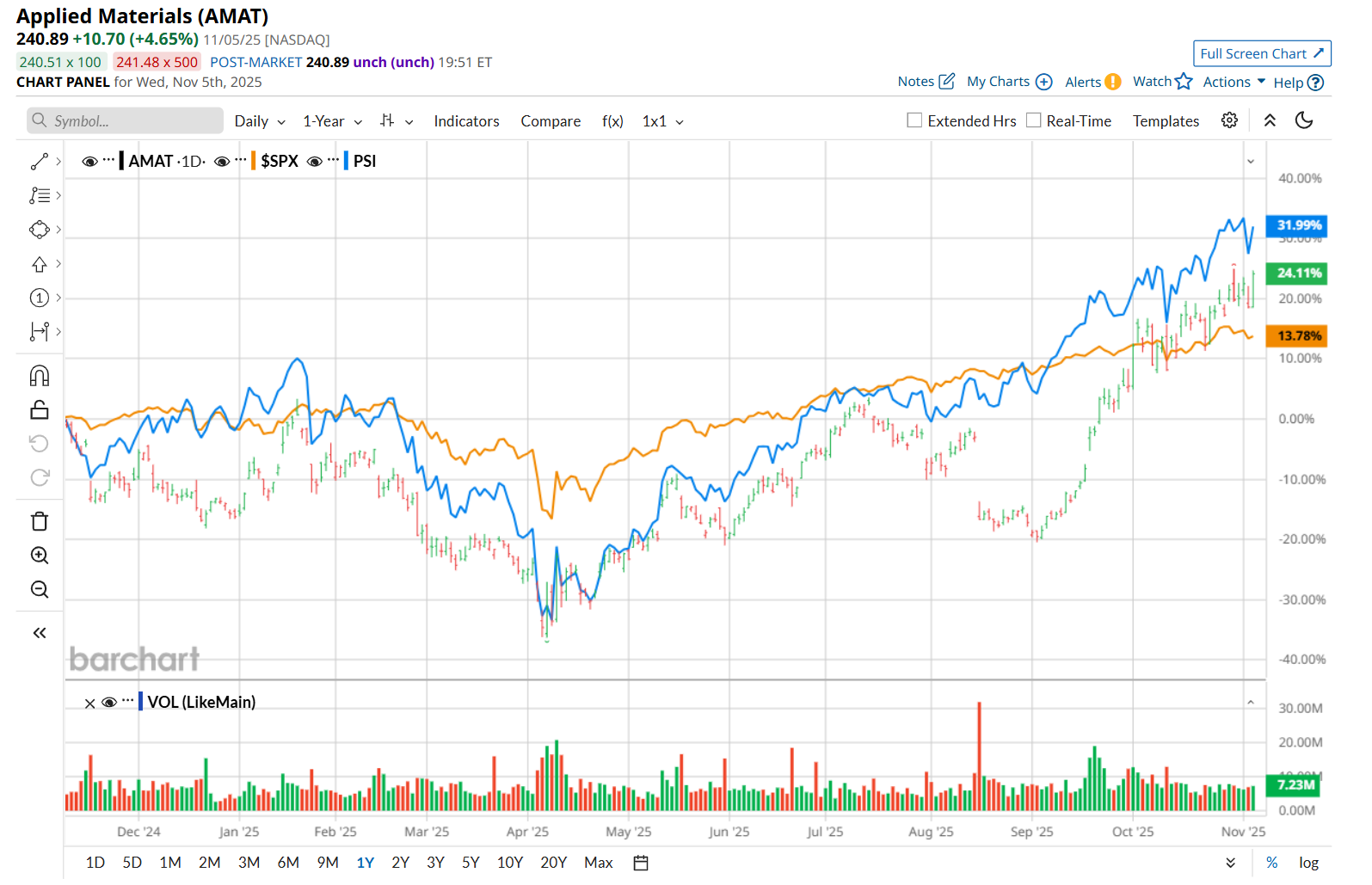 This tech company has outperformed the broader market over the past 52 weeks. Shares of AMAT have surged 29.2% over this time frame, while the broader S&P 500 Index ($SPX) has gained 17.5%. Moreover, on a YTD basis, the stock is up 48.1%, compared to SPX’s 15.6% return.