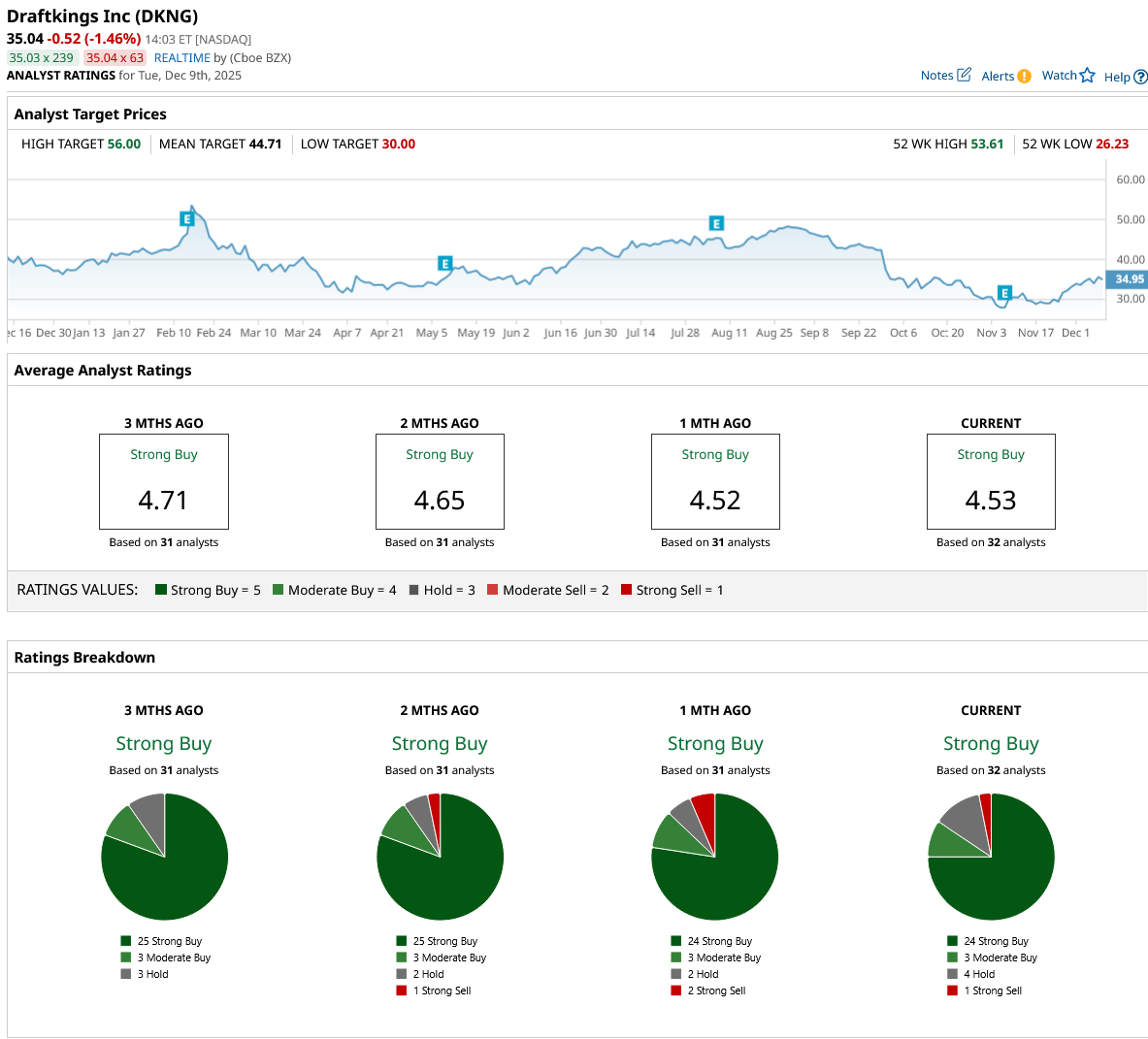 Those kinds of earnings gains help explain why Mizuho is so confident right now. Benjamin Chaiken at Mizuho Securities has kept a “Buy” rating on DKNG and set a $54 price target, describing the recent pullback as an attractive entry point despite what he sees as short‑term noise around volatility and sentiment. On the same day, Bank of America Securities’ Shaun Kelley also repeated a “Buy” rating, which supports the view that the core story is still on track even though the stock has been choppy.
