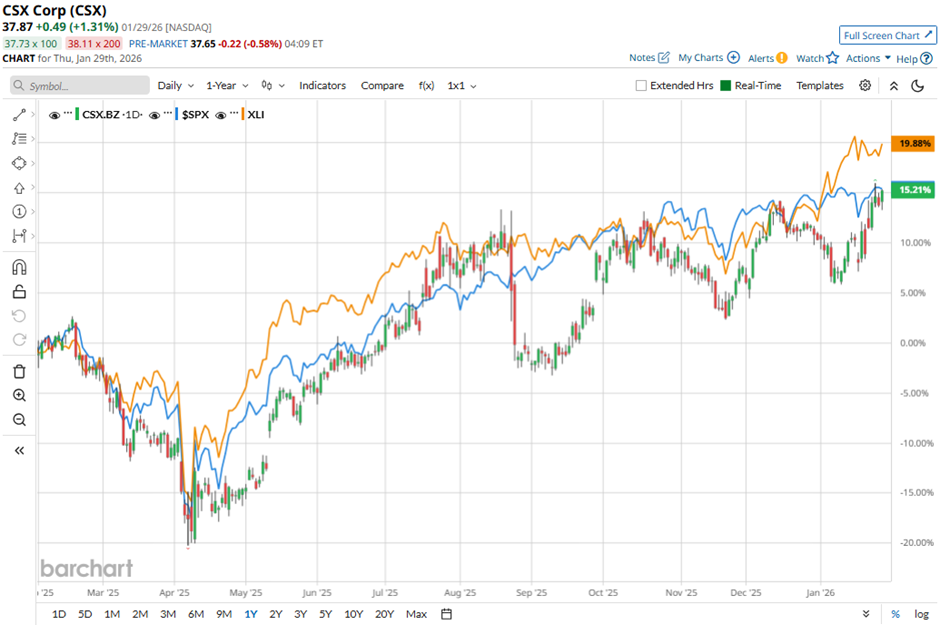 Despite reporting weaker-than-expected Q4 2025 EPS of $0.39 and revenue of $3.51 billion on Jan. 22, shares of CSX rose 2.4% the next day. Investors were also encouraged by the company’s 31.6% operating margin, which increased 30 basis points year-over-year, along with stronger intermodal volumes, higher merchandise pricing, and increased fuel surcharge revenue. These positives helped offset concerns around softer industrial demand and lower export coal volumes that weighed on quarterly results.