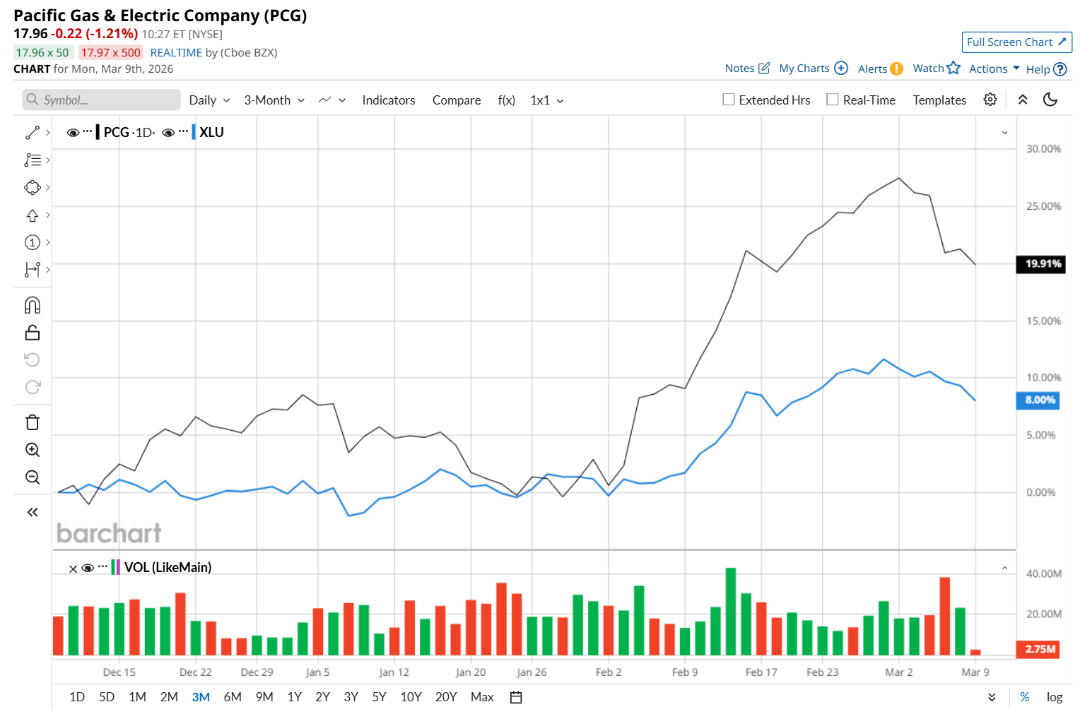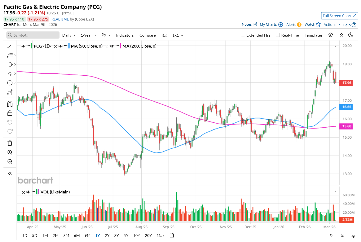 To confirm its recent bullish trend, PCG has been trading above its 200-day and 50-day moving averages since early February.