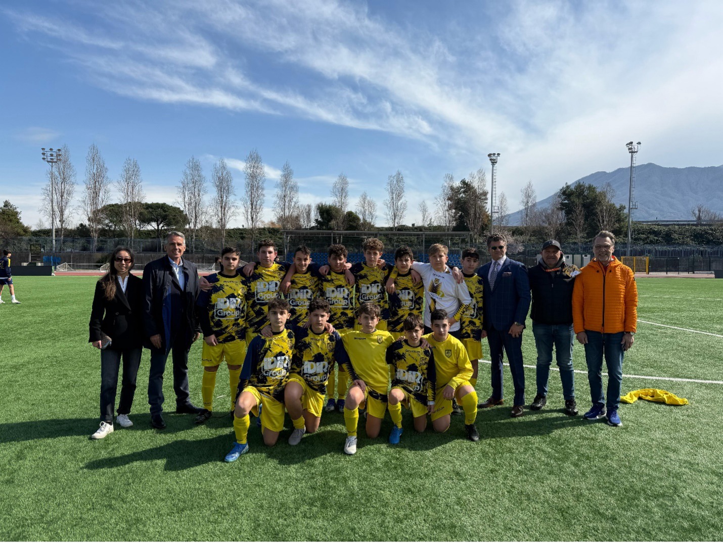 Brera Holdings (Maria Xing, Head of Investments and Daniel McClory, Executive Chairman) and investors pictured at Cercola Training Facility in Naples, where Juve Stabia Academy trains