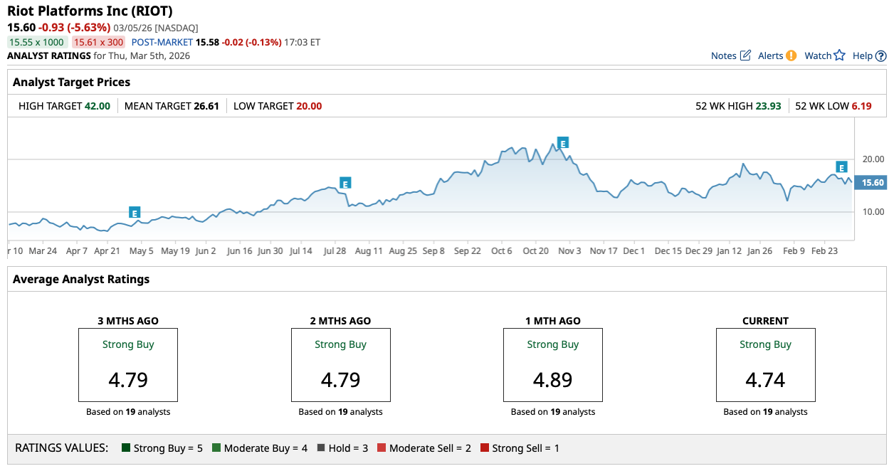 That said, looking at Riot's fundamentals (above), there's a bit of a different story going on here. Riot has continued to mine Bitcoin over the past year, actually producing more than 5,600 tokens in 2025. That's been a boon for its balance sheet (despite the recent plunge in Bitcoin prices) and allowed the company to maintain a positive profit margin of nearly 30%. That's why Riot's management team has talked about transitioning its operations over time—taking a more staggered approach than its peers.