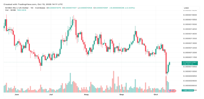From a technical perspective, Shiba Inu is testing the 200-day moving average, a level that has previously acted as support. When buyers retain the price at or above that zone, the next resistance will be around the 50-day and 100-day averages at around $0.0000126 to $0.0000134. RSI is floating around in the low 40s, and thus, the momentum must be boosted with heavy volumes and on-chain trading.