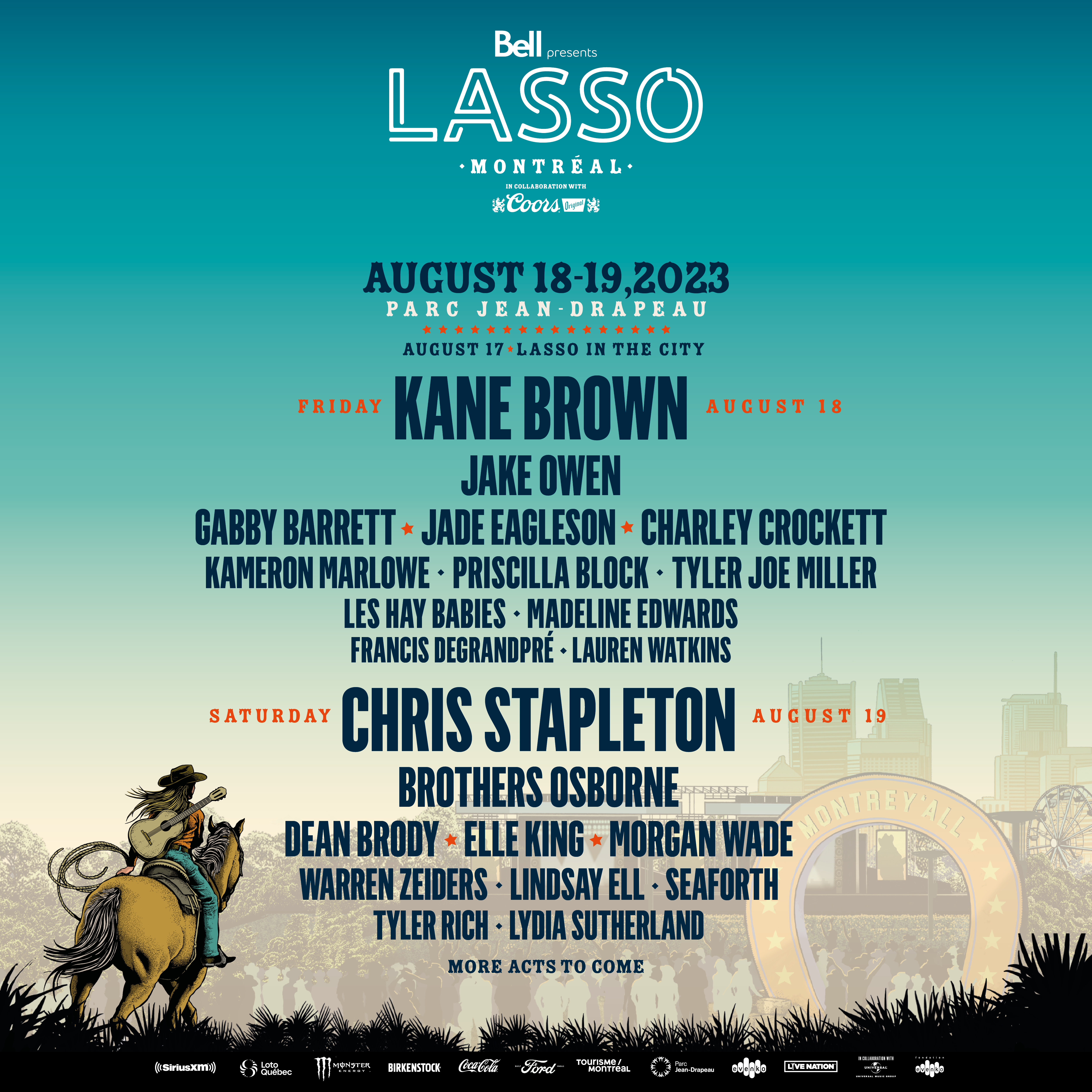 LASSO Montréal, presented by Bell in collaboration with Coors Original, is back after a hugely successful first run in 2022. Last year's inaugural edition of the country music fest surpassed all expectations, creating a massive buzz in the city, and proving that Montrey'all is a country music Mecca! Right out of the gate, LASSO Montréal has proven to be a bonafide phenomenon, offering a state of the art festival experience with all the country fixins you'd expect, on a beautiful island in the St Lawrence River, overlooking the stunning Montreal skyline, and with all that momentum from last year's kickoff edition, the 2023 edition is shaping up to be incredible! With the warm weather just around the corner, Canadians and Quebecers are already gearing up for those long summer days and nights, hanging out with friends and family, eating and drinking to their hearts’ content, while being serenaded by that golden country twang - that is the raison d’être of LASSO!
