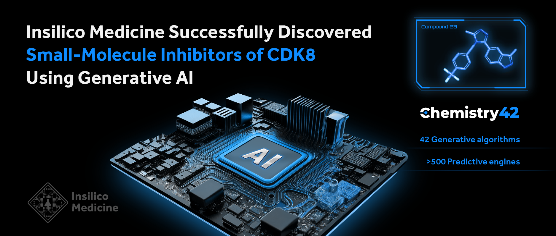 New York and Hong Kong, April 12, 2023 (GLOBE NEWSWIRE) -- Insilico Medicine (“Insilico”), a clinical-stage generative artificial intelligence (AI)-driven drug discovery company, today announced that it has successfully discovered a potent, selective, and orally bioavailable small molecule inhibitor of CDK8 for the treatment of cancer using a structure-based generative chemistry approach enabled by the Chemistry42 multi-modal generative reinforcement learning platform. The research was published in the American Chemical Society’s Journal of Medicinal Chemistry, a leading journal in medicinal chemistry.